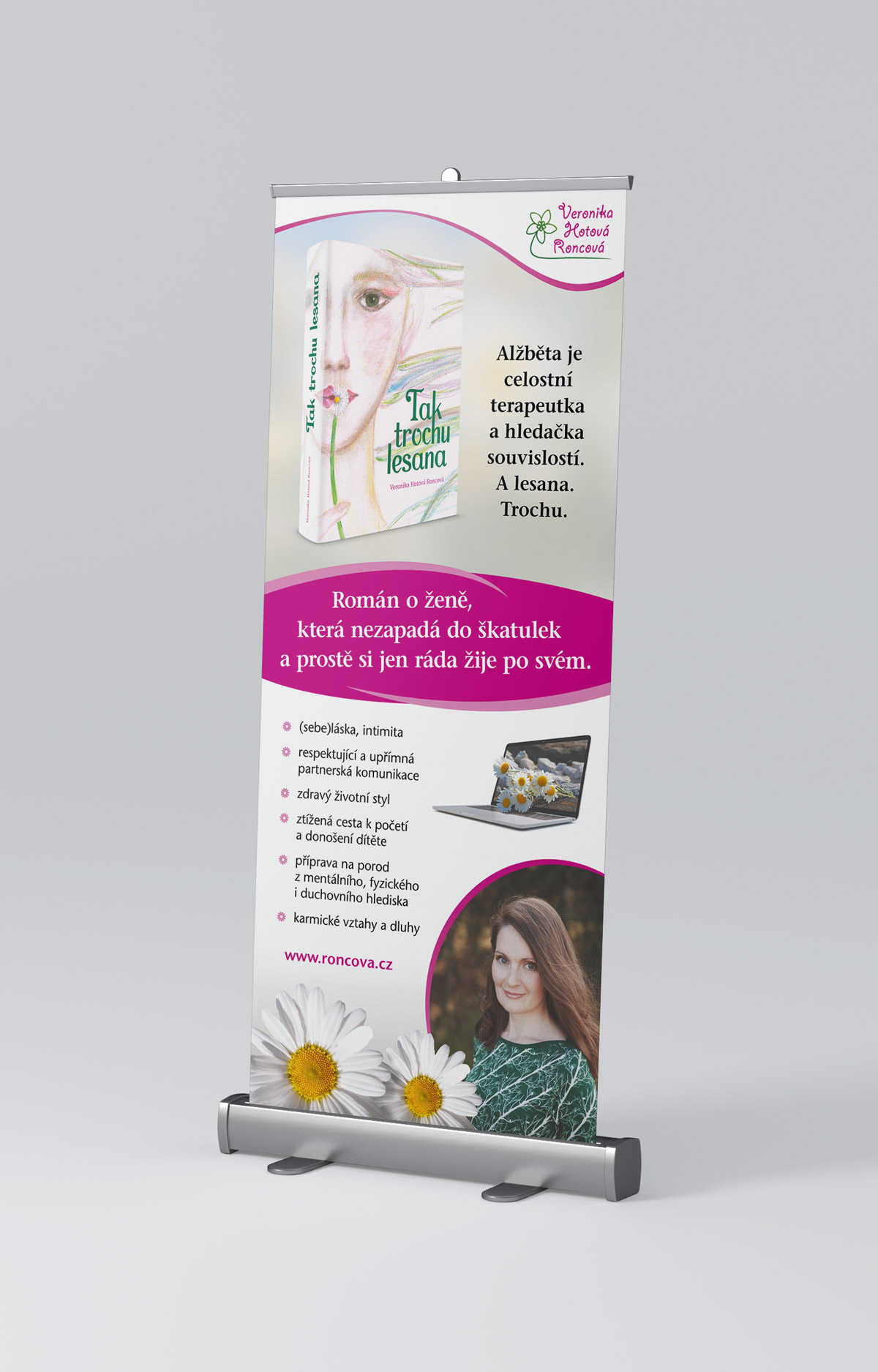 Typ: Kniha + propagační materiály Klient: Veronika Hotová Roncová Realizace: 2019 Popis: Návrh, sazba a předtisková příprava knihy + zpracování propagačních materiálů. Kniha jsem dále upravil pro čtečky a připravil formáty ePub a MOBI.
