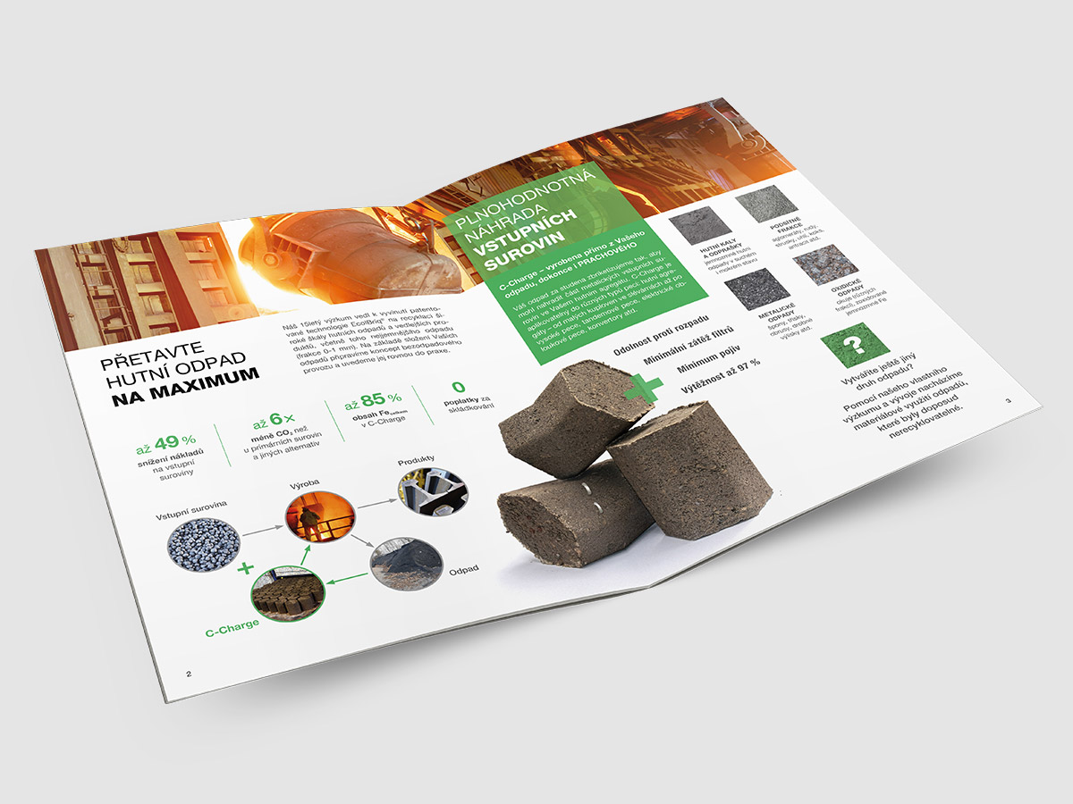 Typ: Brožura Klient: Progres Ekotech Realizace: 2020 Popis: Návrh a zpracování informační brožury a případové studie pro společnost Progres Ekotech, která se zaměřuje na recyklaci hutních odpadů.