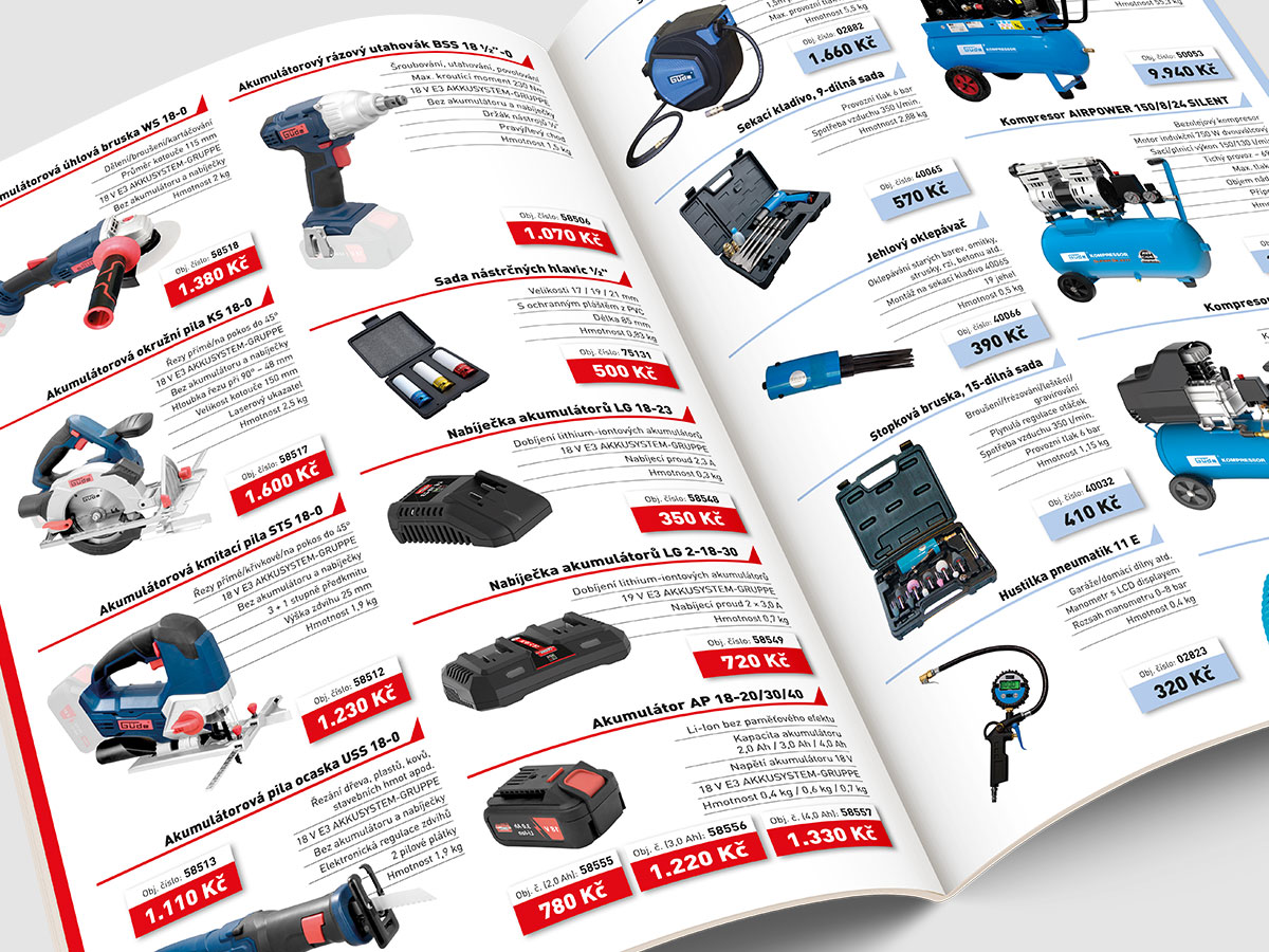 Typ: Katalog Klient: Roman Richtárech Realizace: 2019–2020 Popis: Grafická úprava a zpracování vnitřních stran produktových katalogů společnosti Güde.