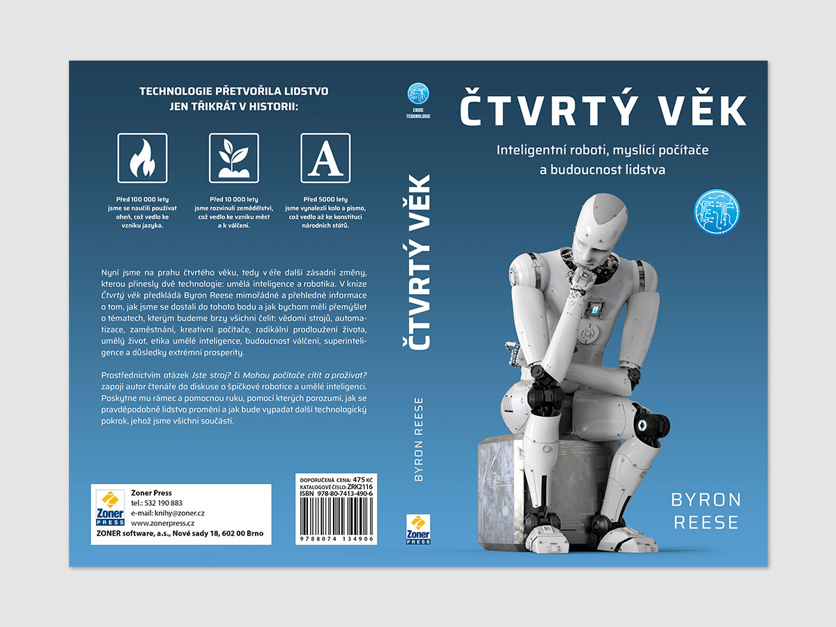 Typ: Kniha Klient: Zoner Press Realizace: 2022 Popis: Návrh a zpracování obálky knihy Čtvrtý věk + sazba a předtisková příprava bloku.