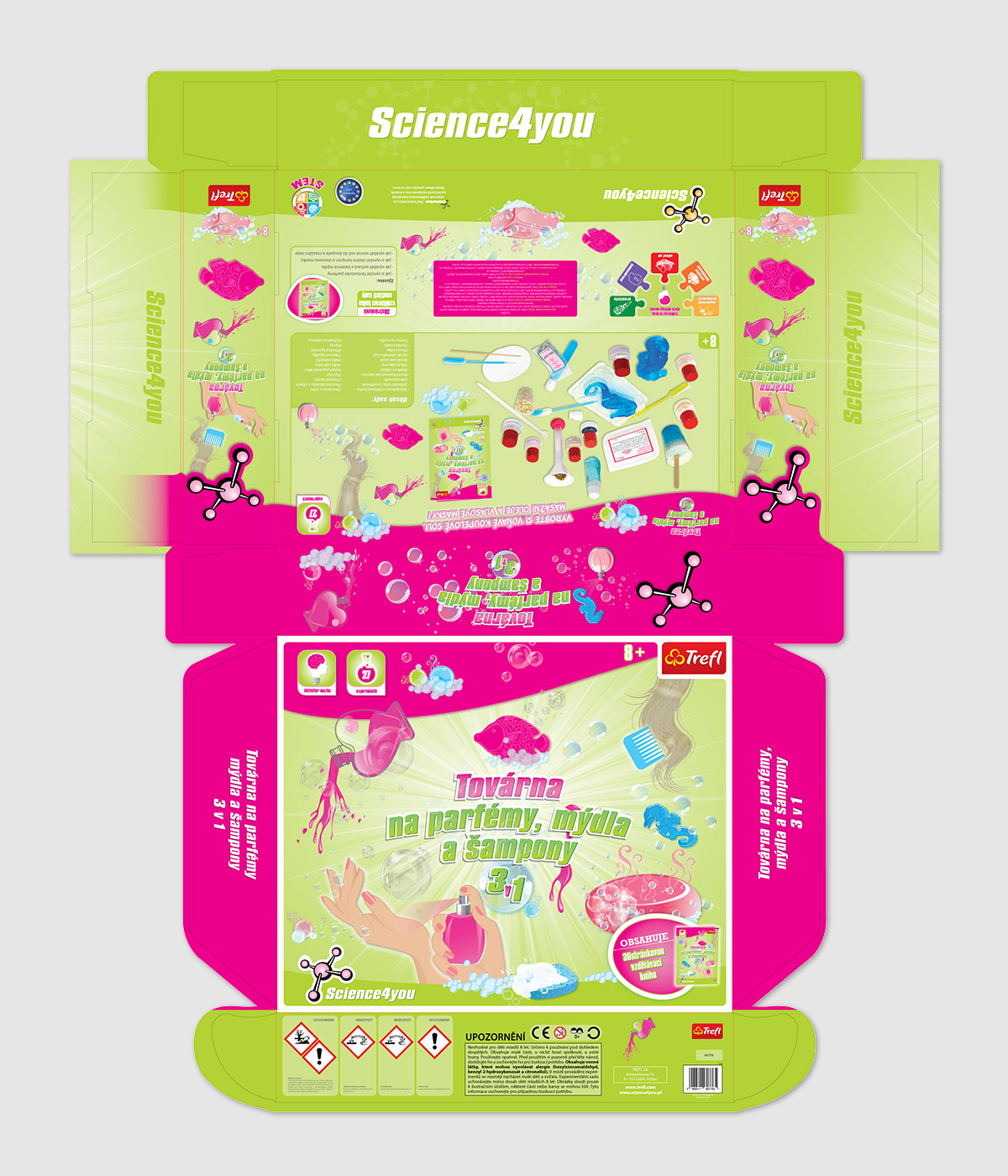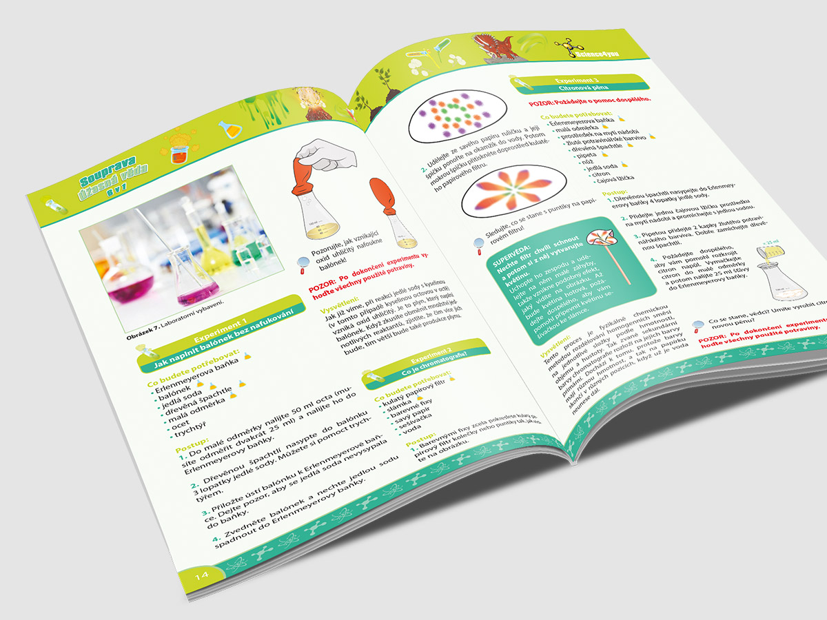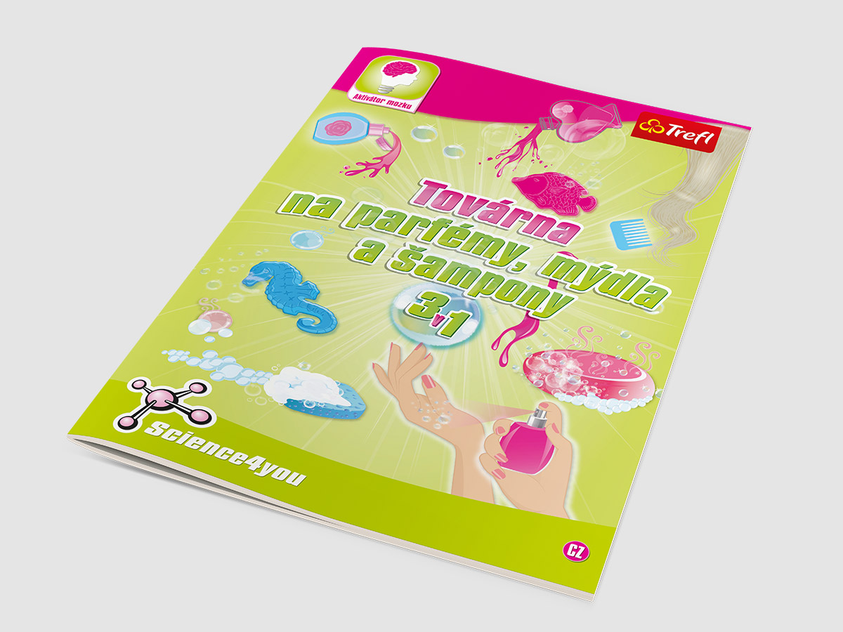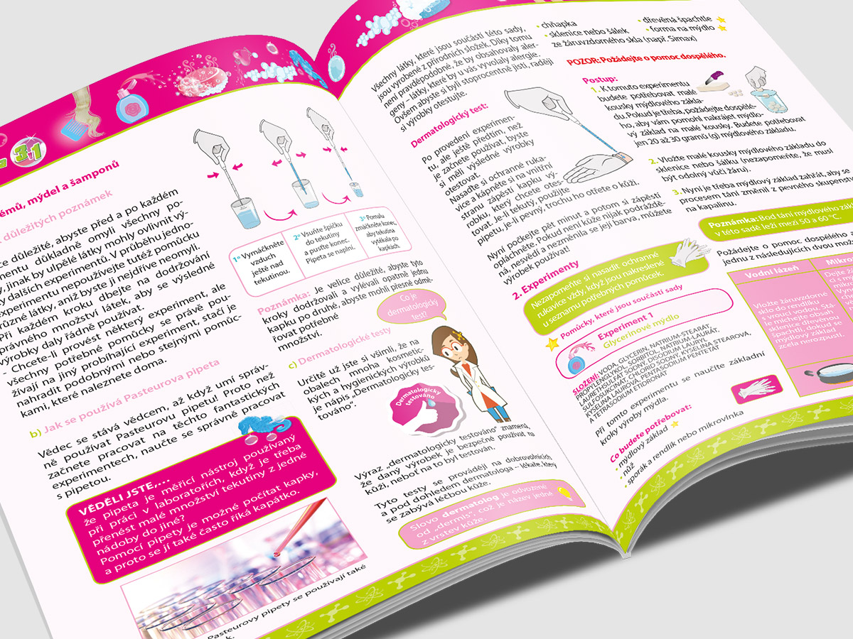 Typ: Manuál a obalový design Klient: Edulab Realizace: 2017 Popis: Zpracování české a slovenské krabičky a manuálu vzdělávací pokusné soupravy pro děti (Továrna na parfémy, mýdla a šampony a Úžasná věda).