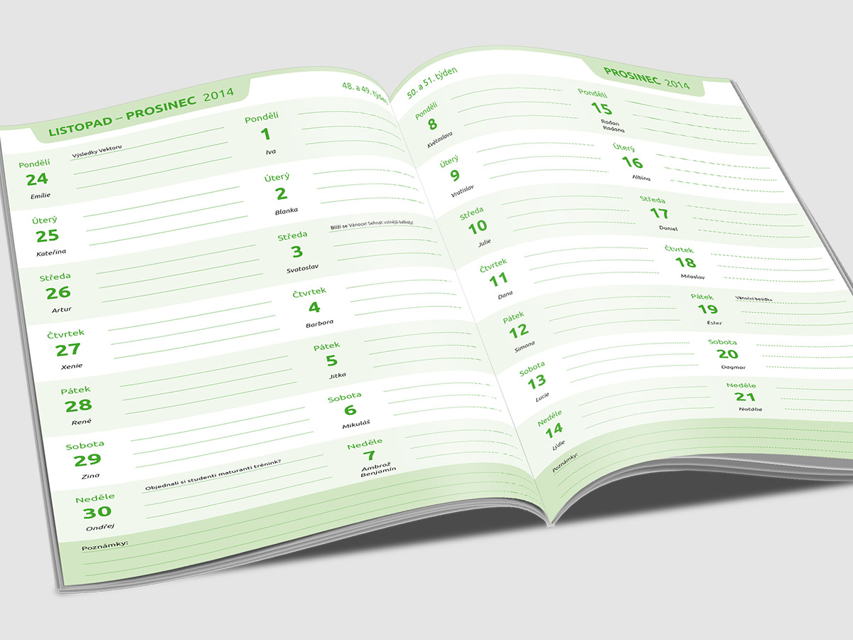 Typ: Produktový katalog, diář a nástěnné kalendáře